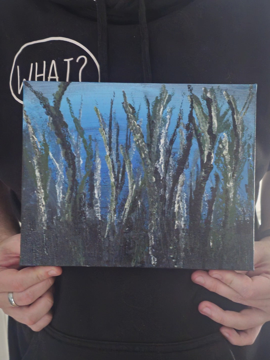 Painted on stretched canvas using lightfast acrylics and sealed with a protective matte varnish to preserve its mood and texture.